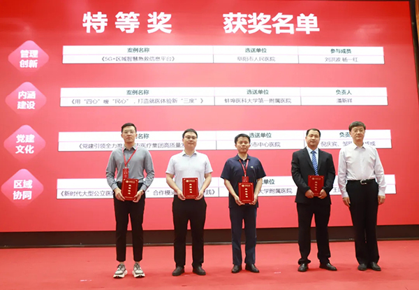大會開幕式對2023年淮海經(jīng)濟(jì)區(qū)現(xiàn)代醫(yī)院管理聯(lián)盟公立醫(yī)院高質(zhì)量發(fā)展優(yōu)秀管理案例“特等獎”“一等獎”獲獎單位進(jìn)行了頒獎。在“優(yōu)秀管理案例分享”分會場,12家獲獎單位代表分別圍繞“黨建文化”“管理創(chuàng)新”“內(nèi)涵建設(shè)”“區(qū)域協(xié)同”等案例主題作了交流分享。
