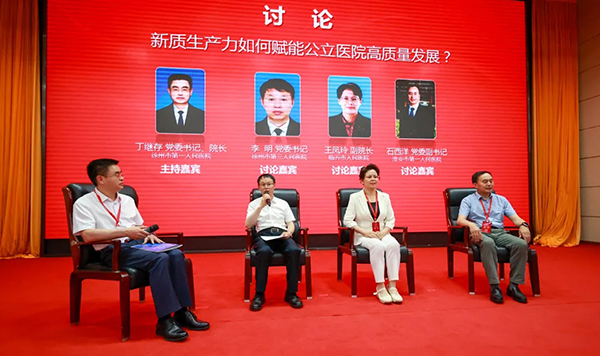 圍繞“培育發(fā)展公立醫(yī)院新質(zhì)生產(chǎn)力”主題,徐州醫(yī)科大學(xué)附屬醫(yī)院院長金培生作了《學(xué)科和人才雙輪驅(qū)動公立醫(yī)院高質(zhì)量發(fā)展報(bào)告》、泰安市中心醫(yī)院黨委書記倪慶賓作了《培育發(fā)展公立醫(yī)院新質(zhì)生產(chǎn)力》報(bào)告;徐州市第三人民醫(yī)院黨委書記李明、臨沂市人民醫(yī)院副院長王鳳玲、淮安市第一人民醫(yī)院黨委副書記石西洋圍繞“新質(zhì)生產(chǎn)力如何賦能公立醫(yī)院高質(zhì)量發(fā)展”主題進(jìn)行了討論。