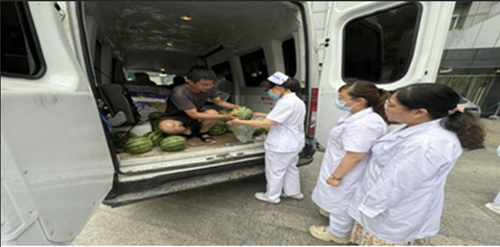 兒科的醫(yī)生們,平日里忙于照顧病患兒童,往往忽略了自己的需要。他們接過西瓜時,臉上露出了舒心的笑容。外科的醫(yī)生們,門診病人及手術量較大,體力消耗極大,這份清涼的西瓜無疑給他們帶來了極大的鼓舞。