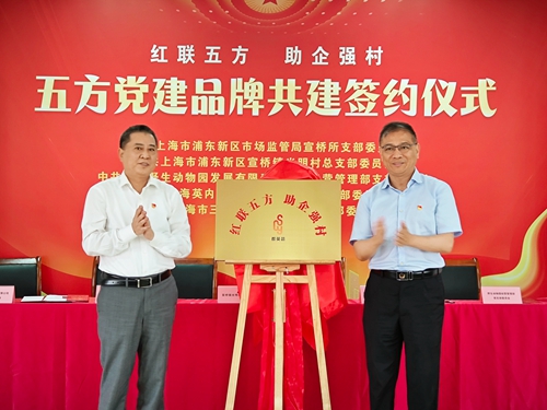 黃淮網(wǎng)(孫 潔)  6月28日,中共上海市浦東新區(qū)市場監(jiān)管局宣橋所支部委員會、中共上海市浦東新區(qū)宣橋鎮(zhèn)光明村支總支部委員會、中共上海野生動物園發(fā)展有限責(zé)任公司經(jīng)營管理部支部委員會、中共上海英內(nèi)物聯(lián)網(wǎng)科技有限公司支部委員會、中共上海市三灶都市型工業(yè)園區(qū)支部委員會五家基層黨組織在光明村舉行黨建共建簽約儀式,這是五方黨組織在促進城鄉(xiāng)融合發(fā)展、加快鄉(xiāng)村全面振興、開辟基層黨建新途徑方面邁出的重要一步。