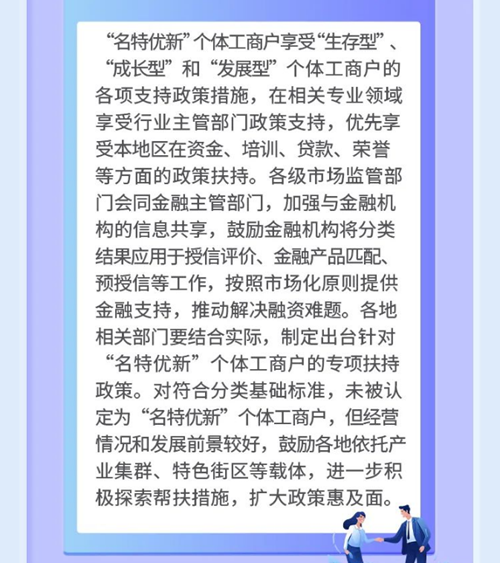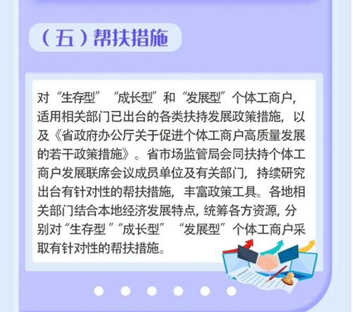 為貫徹落實《促進個體工商戶發(fā)展條例》,進一步加大對個體工商戶發(fā)展的扶持力度,江蘇省市場監(jiān)管局會同相關(guān)部門在全省開展個體工商戶分型分類精準幫扶工作,建立完善扶持個體工商戶發(fā)展個性化、差異化政策措施和服務(wù)機制,提升個體工商戶整體發(fā)展質(zhì)量。