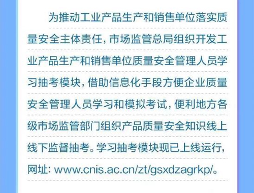 市場(chǎng)監(jiān)管總局啟用工業(yè)產(chǎn)品質(zhì)量安全管理人員學(xué)習(xí)抽考模塊(附一圖讀懂)
