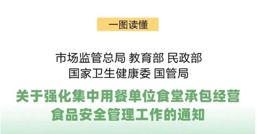 市場(chǎng)監(jiān)管總局等5部門聯(lián)合印發(fā)《關(guān)于強(qiáng)化集中用餐單位食堂承包經(jīng)營(yíng)食品安全管理工作的通知》(附一圖讀懂)