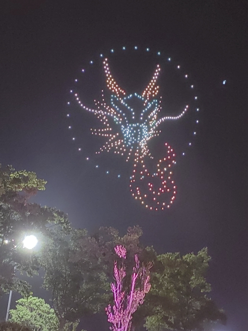 數(shù)百架無人機在夜空中編排出精美的圖案和文字,為游客呈現(xiàn)了一場視覺盛宴。煙火秀的點燃把活動推向高潮,煙火映照下的朔西湖充滿夢幻色彩,讓人更加的耐人尋味。