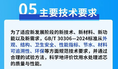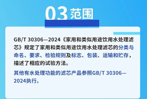 近日,市場(chǎng)監(jiān)管總局(國(guó)家標(biāo)準(zhǔn)委)修訂發(fā)布了《家用和類(lèi)似用途飲用水處理濾芯》(GB/T 30306—2024)國(guó)家標(biāo)準(zhǔn),將于2025年2月1日正式實(shí)施。本次標(biāo)準(zhǔn)修訂從健康安全、材料可追溯性、節(jié)水、環(huán)保等方面規(guī)范了相關(guān)的技術(shù)要求,并通過(guò)合理的試驗(yàn)方法,科學(xué)地評(píng)價(jià)飲用水處理濾芯的質(zhì)量與性能。標(biāo)準(zhǔn)的發(fā)布和實(shí)施,將為相關(guān)行業(yè)企業(yè)在設(shè)計(jì)開(kāi)發(fā)、技術(shù)改造、產(chǎn)品升級(jí)時(shí),提供方向引導(dǎo)和技術(shù)支持,有效保障飲用水處理濾芯的產(chǎn)品質(zhì)量,帶動(dòng)提高整機(jī)產(chǎn)品品質(zhì)和消費(fèi)者滿(mǎn)意度。