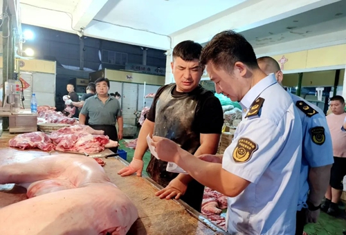 檢查共出動執(zhí)法人員20余人,對漢城商都農(nóng)貿(mào)市場內(nèi)的38家豬肉攤點進行了逐一檢查,未發(fā)現(xiàn)違法違規(guī)行為。