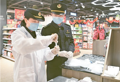中國式現(xiàn)代化,民生為大。市場監(jiān)管領(lǐng)域必須強化以人民為中心的發(fā)展思想,守牢安全底線,切實保障人民群眾生命財產(chǎn)安全。圖為2024年2月20日,北京市海淀區(qū)市場監(jiān)督管理局工作人員對一家超市的在售元宵進行快檢。新華社記者 任超/攝