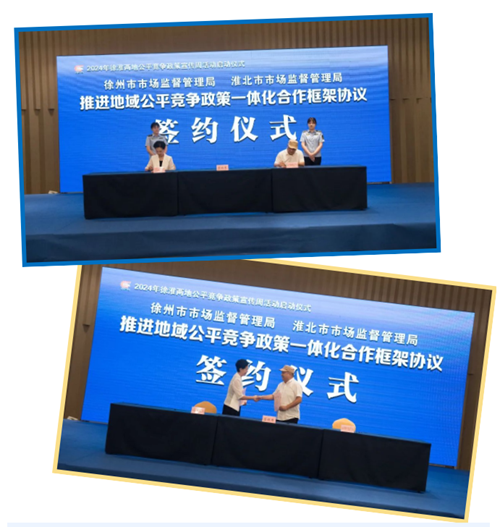 黃淮網(wǎng)(費(fèi)堅(jiān)真 通訊員 徐仕評)  為深入貫徹黨的二十屆三中全會精神,全面落實(shí)《公平競爭審查條例》,積極推進(jìn)全國統(tǒng)一大市場建設(shè),9月9日,“2024年徐淮兩地公平競爭政策宣傳周活動”啟動儀式在徐州舉行。啟動儀式上,江蘇省徐州市、安徽省淮北市市場監(jiān)管局簽署《推進(jìn)地域公平競爭政策一體化合作框架協(xié)議》(以下簡稱《合作框架協(xié)議》),標(biāo)志著徐淮兩市在公平競爭審查跨地區(qū)協(xié)作方面實(shí)現(xiàn)了新的突破。