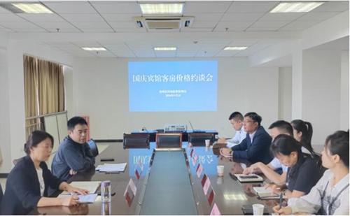 召集徐州餐飲酒店業(yè)商會(huì)、徐州餐飲協(xié)會(huì)、徐州市旅游協(xié)會(huì)及部分企業(yè)負(fù)責(zé)人參加國(guó)慶賓館客房?jī)r(jià)格約談會(huì),通報(bào)近年賓館客房?jī)r(jià)格違法典型案例,提出加強(qiáng)價(jià)格自律、穩(wěn)定節(jié)日客房?jī)r(jià)格要求;懸掛《價(jià)格提醒告誡書》,引導(dǎo)經(jīng)營(yíng)者自覺(jué)承擔(dān)社會(huì)責(zé)任,維護(hù)市場(chǎng)價(jià)格穩(wěn)定。