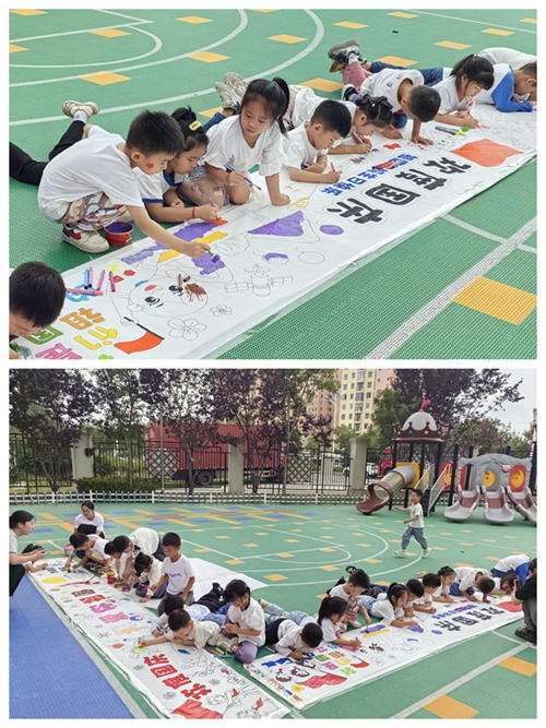 上午10點(diǎn),由老師帶隊(duì),幼兒園各個(gè)班級(jí)陸續(xù)開始繪畫。他們每人選擇自己喜歡的顏色,開始創(chuàng)作。