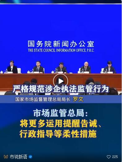 六是嚴(yán)格規(guī)范涉企執(zhí)法監(jiān)管行為。司法部將進(jìn)一步加強(qiáng)涉企行政執(zhí)法監(jiān)督,積極推進(jìn)嚴(yán)格規(guī)范公正文明執(zhí)法,大力整治行政執(zhí)法突出問題,加強(qiáng)涉企執(zhí)法訴求溝通機(jī)制建設(shè),加大涉企行政復(fù)議案件辦理力度,推動行政機(jī)關(guān)依法履職、依法行政。市場監(jiān)管總局將加快出臺推行服務(wù)型執(zhí)法具體舉措,制定行政執(zhí)法行為規(guī)范,更多運(yùn)用提醒告誡、行政指導(dǎo)等柔性措施,將服務(wù)貫穿于監(jiān)管執(zhí)法全過程、各環(huán)節(jié),科學(xué)引導(dǎo)企業(yè)依法合規(guī)經(jīng)營。