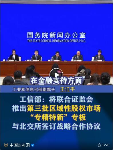 在金融支持方面。近期,工信部將聯(lián)合證監(jiān)會推出第三批區(qū)域性股權(quán)市場“專精特新”專板,與北交所簽訂戰(zhàn)略合作協(xié)議,進(jìn)一步暢通專精特新中小企業(yè)資本市場融資渠道;會同有關(guān)部門聚焦重點(diǎn)產(chǎn)業(yè)鏈,啟動“一月一鏈”中小企業(yè)融資促進(jìn)全國行活動,推動金融機(jī)構(gòu)與鏈上中小企業(yè)開展精準(zhǔn)對接。