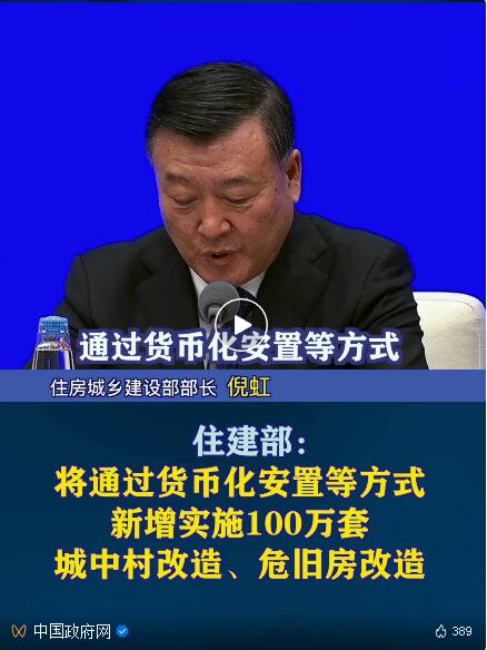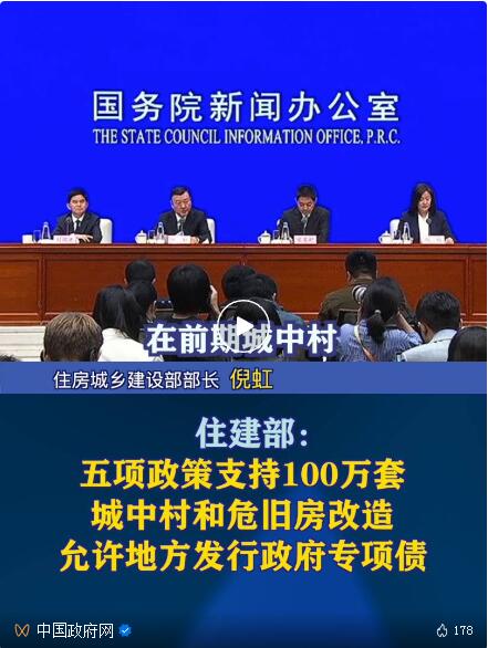 各地還可以結(jié)合城市更新,進(jìn)一步謀劃選擇條件成熟的項(xiàng)目,提前實(shí)施,只要前期工作做得好,我們還可以在100萬套基礎(chǔ)上繼續(xù)加大支持力度。