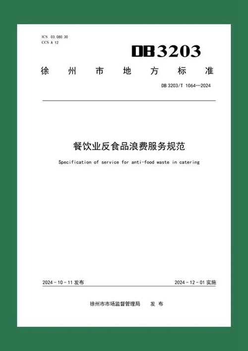 徐州市發(fā)布《餐飲業(yè)反食品浪費服務規(guī)范》地方標準