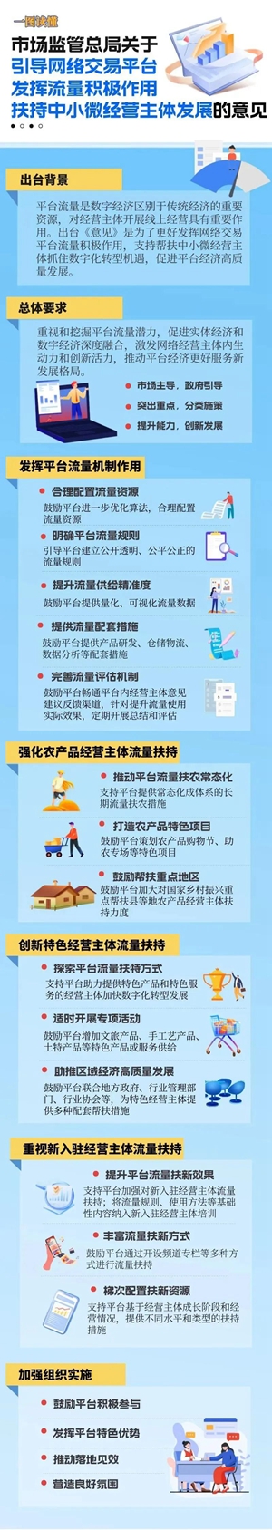 下一步,市場(chǎng)監(jiān)管總局將指導(dǎo)地方市場(chǎng)監(jiān)管部門抓好《意見(jiàn)》落實(shí),加強(qiáng)對(duì)網(wǎng)絡(luò)交易平臺(tái)引導(dǎo),積極推動(dòng)流量扶持政策落地見(jiàn)效。