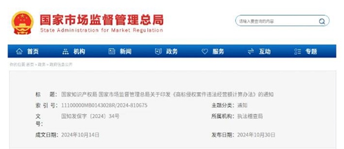 國(guó)家知識(shí)產(chǎn)權(quán)局 國(guó)家市場(chǎng)監(jiān)督管理總局關(guān)于印發(fā)《商標(biāo)侵權(quán)案件違法經(jīng)營(yíng)額計(jì)算辦法》的通知