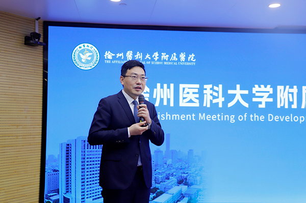 徐州醫(yī)科大學(xué)黨委常委、副校長、徐醫(yī)附院黨委書記呂凌作醫(yī)院建設(shè)發(fā)展報告。徐醫(yī)附院院長金培生主持會議。