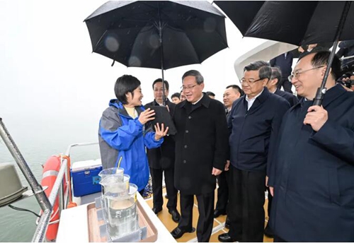 11月13日,中共中央政治局常委、國務(wù)院總理李強在河北調(diào)研。這是李強在白洋淀詳細了解生態(tài)環(huán)境治理保護情況。新華社記者 饒愛民 攝