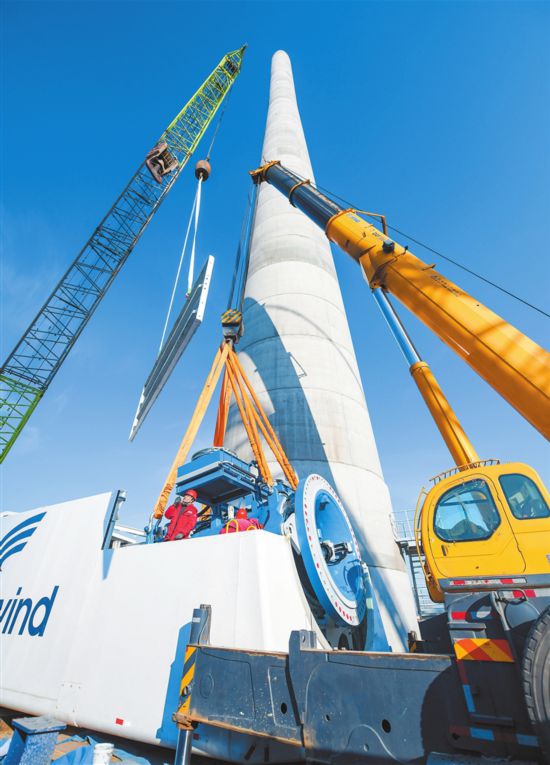 12月18日,在位于新安縣鐵門鎮(zhèn)的雷華風(fēng)電場(chǎng)項(xiàng)目?jī)?nèi),大型機(jī)械正在進(jìn)行風(fēng)機(jī)塔筒吊裝作業(yè)。項(xiàng)目建成并網(wǎng)后,可減少二氧化碳和煙塵排放,節(jié)約煤炭和水資源,還可助力鄉(xiāng)村振興。張怡熙 郝妍 攝