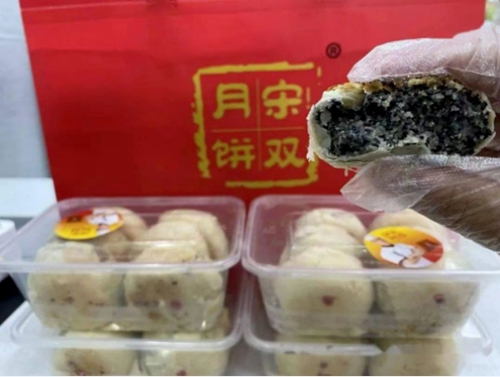 邳州市宋雙糕點(diǎn)坊(宋雙月餅)始建于1972年,“宋雙”為其注冊商標(biāo),系徐州市“彭城名坊”。該坊月餅主打“五仁”“椒鹽”兩種風(fēng)味,通體圓潤,表面金黃飽滿,腰身鼓圓,呈乳白色,皮薄餡大,香酥松軟,觸之即碎,是徐州東部、臨沂南部家喻戶曉的糕點(diǎn)品牌。每逢佳節(jié),周邊各地商家也前來采購,該坊生產(chǎn)的月餅供不應(yīng)求,是排隊(duì)都要吃的月餅。