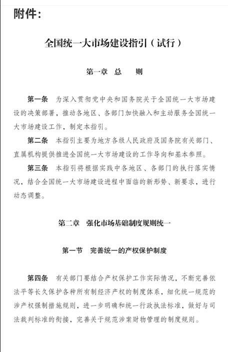 國(guó)家發(fā)展改革委關(guān)于印發(fā)《全國(guó)統(tǒng)一大市場(chǎng)建設(shè)指引(試行)》的通知