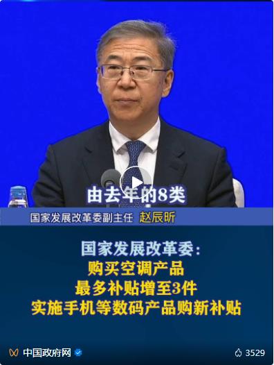 ①國(guó)家發(fā)展改革委:享受以舊換新補(bǔ)貼的家電產(chǎn)品,由去年的8類增加到12類;