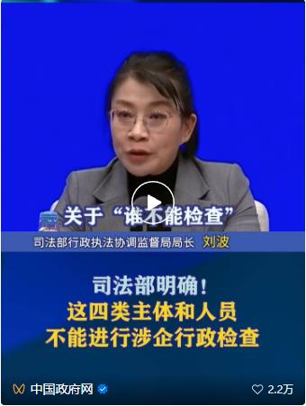 國(guó)務(wù)院新聞辦公室于1月7日下午舉行國(guó)務(wù)院政策例行吹風(fēng)會(huì),請(qǐng)司法部有關(guān)負(fù)責(zé)人介紹《國(guó)務(wù)院辦公廳關(guān)于嚴(yán)格規(guī)范涉企行政檢查的意見》有關(guān)情況。一起來看——