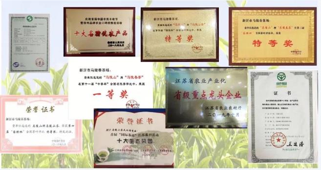 新沂市馬陵春茶場(chǎng)先后被授予全國茶產(chǎn)業(yè)科普教育基地、江蘇省農(nóng)業(yè)科學(xué)院試驗(yàn)基地、南京農(nóng)業(yè)大學(xué)產(chǎn)學(xué)研基地、江蘇省三星級(jí)鄉(xiāng)村旅游示范點(diǎn)、徐州市五星級(jí)誠信企業(yè)、徐州市農(nóng)家樂示范點(diǎn),榮獲江蘇省十六屆、十七屆“陸羽杯”名特茶評(píng)比特等獎(jiǎng),第三屆、第四屆“國飲杯”全國名茶評(píng)比特等獎(jiǎng),第十一屆“中茶杯”全國名優(yōu)茶評(píng)比一等獎(jiǎng),第十六屆“綠博會(huì)”金獎(jiǎng),第五屆“國飲杯”全國茶業(yè)評(píng)比金獎(jiǎng)。