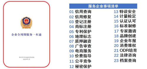 《企業(yè)全周期服務(wù)一本通》從企業(yè)需求角度出發(fā),制定“服務(wù)企業(yè)事項清單”,包含信用修復(fù)、登記注冊、專利保護、認證認可、品牌創(chuàng)建、企業(yè)年報等23大類52小項服務(wù)內(nèi)容,外加知識產(chǎn)權(quán)快維中心和木制家具、人造板質(zhì)量監(jiān)督檢驗中心兩個國家級中心特色服務(wù)介紹。每項服務(wù)內(nèi)容都有服務(wù)地點、聯(lián)系人及聯(lián)系方式,讓有需求的企業(yè)找得到門、見得到人、辦得成事。
