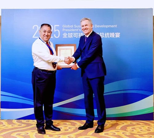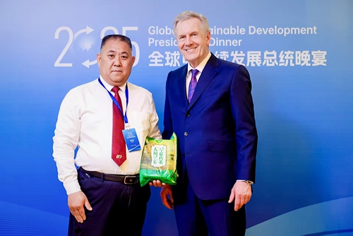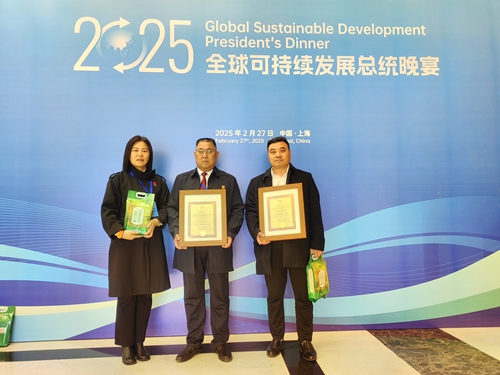 活動現(xiàn)場,旱稻王種業(yè)有限公司憑借其在旱稻技術(shù)推廣與生態(tài)農(nóng)業(yè)領(lǐng)域的卓越貢獻(xiàn),斬獲兩項國際殊榮——由武爾夫前總統(tǒng)親自頒發(fā)的“全球可持續(xù)發(fā)展合作企業(yè)”獎,以及五彩旱稻高鋅高鈣大米獲評全球中小企業(yè)聯(lián)盟官方推薦大米。