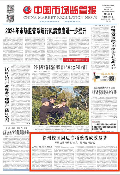 《中國市場(chǎng)監(jiān)管報(bào)》頭版:徐州校園周邊專項(xiàng)整治成效顯著