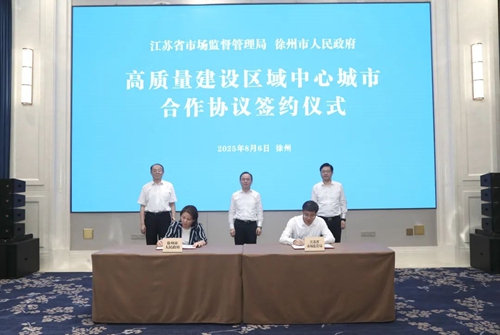 8月6日,徐州市人民政府與省市場監(jiān)管局高質(zhì)量建設(shè)區(qū)域中心城市合作協(xié)議簽約儀式舉行。市委書記宋樂偉,省市場監(jiān)管局局長、黨組書記沈海斌出席并講話,市委副書記、代市長沈峻峰主持,省市場監(jiān)管局副局長夏海濤,市領(lǐng)導(dǎo)郭曉敏、王浩參加。