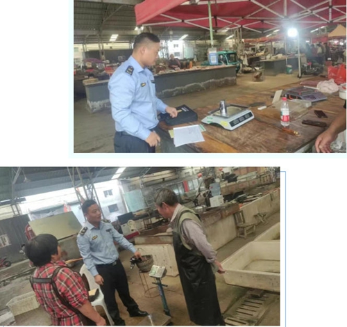 聚焦群眾節(jié)日消費高頻區(qū)域,圍繞“計量器具合規(guī)性”與“定量包裝準(zhǔn)確性”兩大核心展開細(xì)致排查。嚴(yán)查計量器具“準(zhǔn)度”,執(zhí)法人員攜帶標(biāo)準(zhǔn)砝碼測試電子計價秤等器具的示值誤差、重復(fù)性等指標(biāo),確保設(shè)備功能完好、數(shù)據(jù)準(zhǔn)確。要求經(jīng)營戶在器具顯著位置張貼有效檢定標(biāo)識,對標(biāo)識模糊、脫落的及時補貼,確保消費者直觀識別合規(guī)器具。同時,還向市場管理方移交《計量監(jiān)管責(zé)任清單》,壓實“公平秤”責(zé)任,保障消費者可隨時自主復(fù)秤、便捷維權(quán)監(jiān)督。