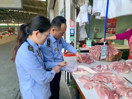 在農(nóng)貿(mào)市場,執(zhí)法人員對肉類、蔬菜、水產(chǎn)等重點區(qū)域開展檢查,嚴(yán)格查驗經(jīng)營戶的檢驗檢疫證明、進貨票據(jù)等臺賬資料,重點檢查畜禽產(chǎn)品是否來源合法、可追溯,是否存在銷售未經(jīng)檢驗檢疫或檢驗檢疫不合格產(chǎn)品等違法行為。對于現(xiàn)場發(fā)現(xiàn)的個別攤位存在的蔬菜擺放雜亂、衛(wèi)生條件欠佳等情況,執(zhí)法人員當(dāng)場提出整改要求,并耐心指導(dǎo)攤主規(guī)范經(jīng)營行為,切實保障市民餐桌上的食材安全。