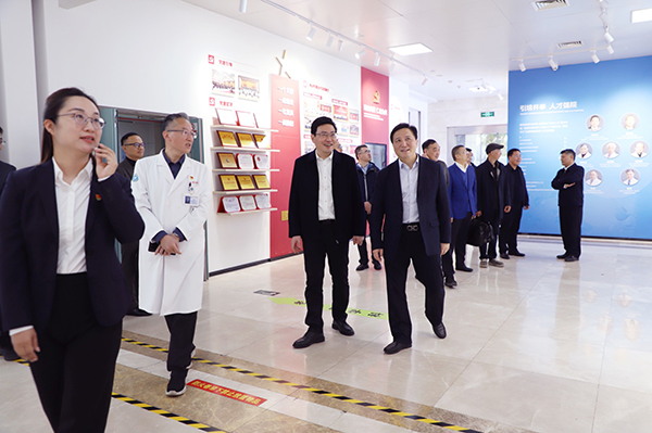 調(diào)研組一行首先來(lái)到淮海醫(yī)學(xué)科技創(chuàng)新中心,徐醫(yī)附院副院長(zhǎng)王志萍匯報(bào)科創(chuàng)中心有關(guān)工作。作為徐醫(yī)附院政校院企合作項(xiàng)目,淮海醫(yī)學(xué)科技創(chuàng)新中心建有健康醫(yī)療大數(shù)據(jù)中心、臨床研究與醫(yī)學(xué)轉(zhuǎn)化中心、精準(zhǔn)醫(yī)學(xué)中心、生物樣本中心、科技創(chuàng)新與公共服務(wù)中心,江蘇省調(diào)研組一行實(shí)地參觀并詳細(xì)了解其建設(shè)情況。隨后調(diào)研組一行實(shí)地走訪徐醫(yī)附院淮海路院區(qū)門(mén)診、臨床科室及院史文化長(zhǎng)廊,詳細(xì)了解醫(yī)院門(mén)診情況及醫(yī)療新技術(shù)開(kāi)展等情況。