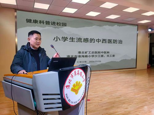 黃淮網(wǎng)(宋 梅  田 軍)  1月7日,淮北礦工總醫(yī)院中醫(yī)科主任余海林走進(jìn)淮北市淮海路小學(xué),開(kāi)展“冬季流感中西醫(yī)防治”主題科普講座,為校園兒童健康筑起“防護(hù)墻”。