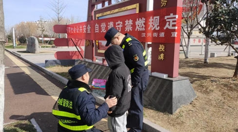 16日上午11時(shí)許,執(zhí)法人員在漢興勞模廣場巡查時(shí),發(fā)現(xiàn)一名未成年人攜帶煙花爆竹,當(dāng)即上前規(guī)范處置。堅(jiān)持“教育為主、勸導(dǎo)為先”原則,耐心細(xì)致講解禁燃禁放政策規(guī)定,細(xì)致分析煙花爆竹燃放易引發(fā)火災(zāi)、人身傷害等安全風(fēng)險(xiǎn)。經(jīng)勸導(dǎo)教育,該未成年人充分認(rèn)識到自身錯(cuò)誤,安全隱患得到及時(shí)消除。