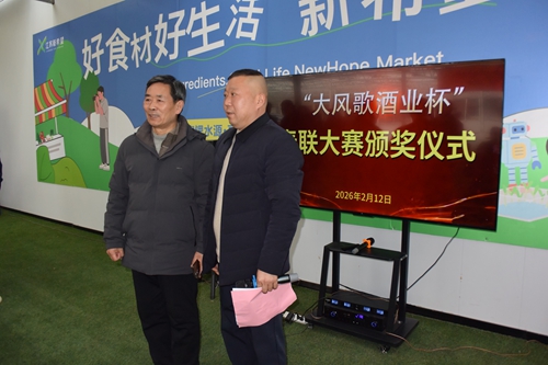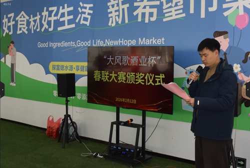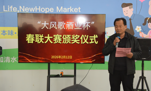 黃淮網(wǎng)(尹 健) 2月12日下午,“大風(fēng)歌酒業(yè)杯”淮海經(jīng)濟(jì)區(qū)春聯(lián)大賽頒獎(jiǎng)儀式在江蘇新希望生態(tài)科技有限公司隆重舉行;顒蝇F(xiàn)場喜氣融融、墨香四溢,來自主辦、協(xié)辦單位的嘉賓、獲獎(jiǎng)作者及企業(yè)代表50余人齊聚一堂,共同見證這場融傳統(tǒng)文化、書法藝術(shù)與企業(yè)文化于一體的頒獎(jiǎng)盛典。