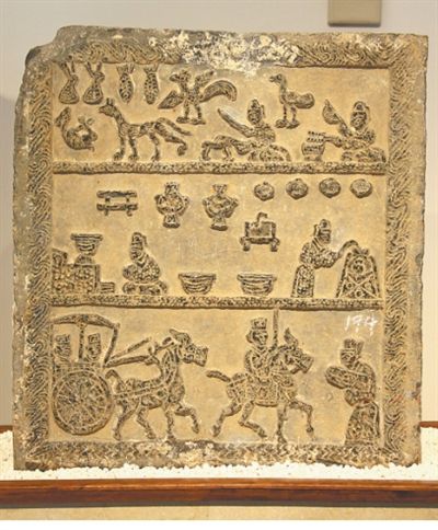 現(xiàn)藏于徐州博物館的東漢時(shí)期漢畫像石《宴飲圖》。徐州博物館供圖