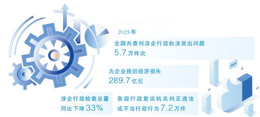 2025年3月起,全國開展規(guī)范涉企行政執(zhí)法專項行動,截至同年底,共查糾涉企行政執(zhí)法突出問題5.7萬件次,為企業(yè)挽回經(jīng)濟損失289.7億元,涉企行政檢查總量同比下降33%。