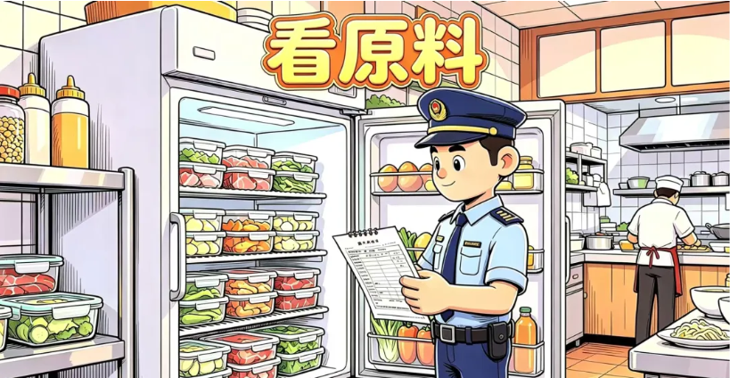 食材分類、隔墻、離地存放,原料、半成品、成品分區(qū)存放。