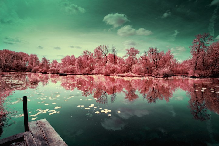 法國攝影師David Keochkerian的紅外攝系列作品,借助不同配色勾勒出一個(gè)世外桃源般自然美景,引人入勝。