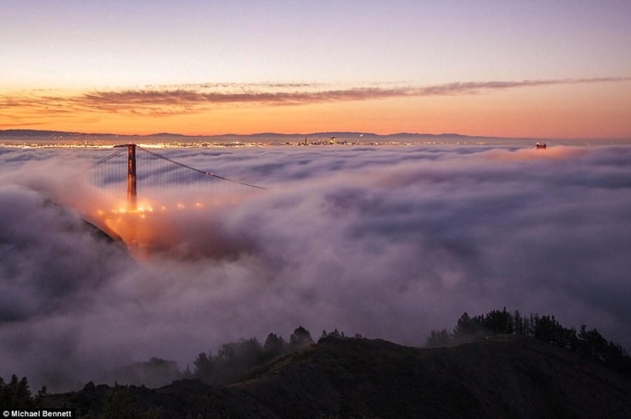 金門霧:這是日出之前,濃霧籠罩下的金門大橋。