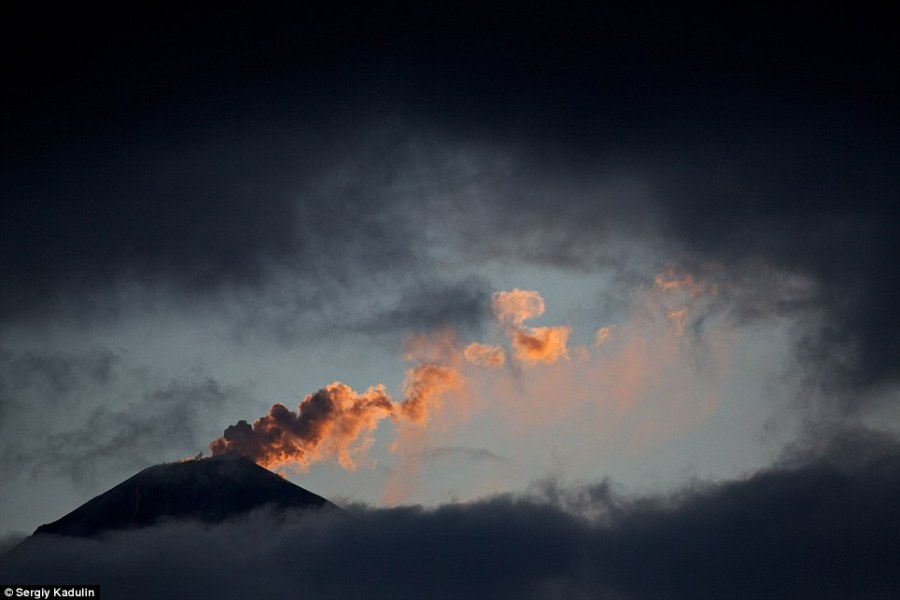 Klyuchevskoy火山噴發(fā):這是2013年9月,第一縷陽光照射在Klyuchevskoy火山口時的景象。