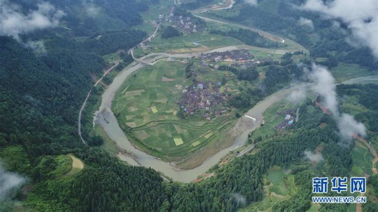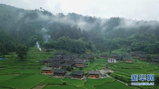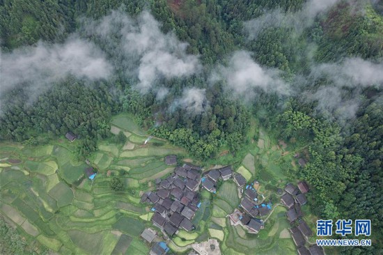 煙雨中的貴州省榕江縣寨蒿鎮(zhèn)三洲村風(fēng)光(6月24日無人機(jī)拍攝)。 6月24日,貴州榕江縣的侗族村寨籠罩在煙雨之中,仿佛披上了一層輕紗霓裳,構(gòu)成了一幅幅秀美的山水畫卷。 新華社記者 歐東衢 攝