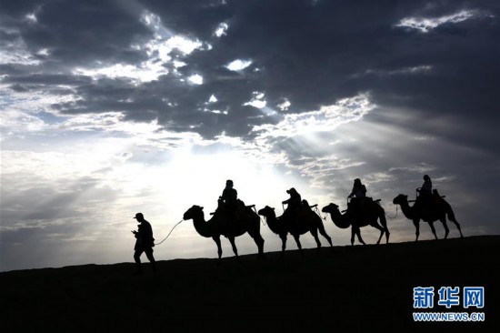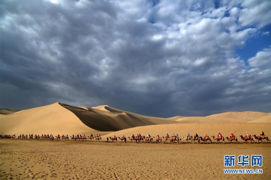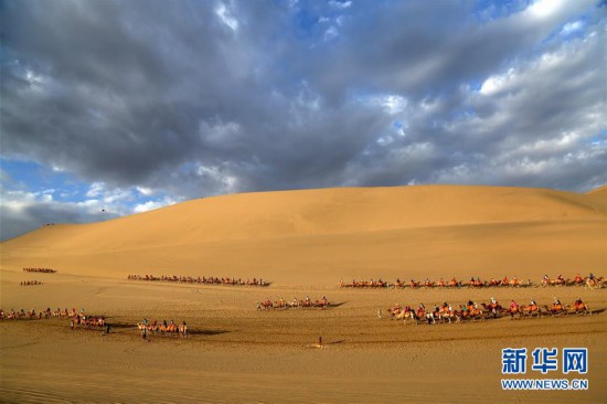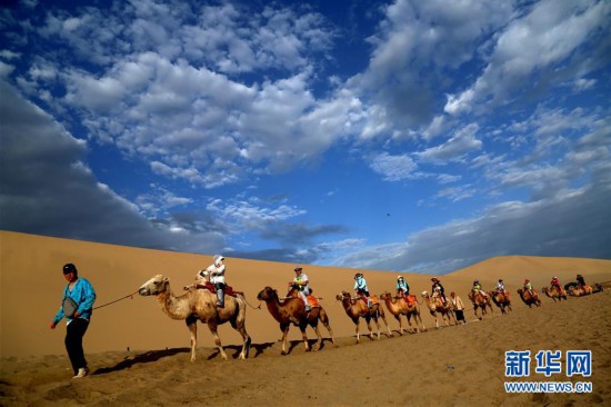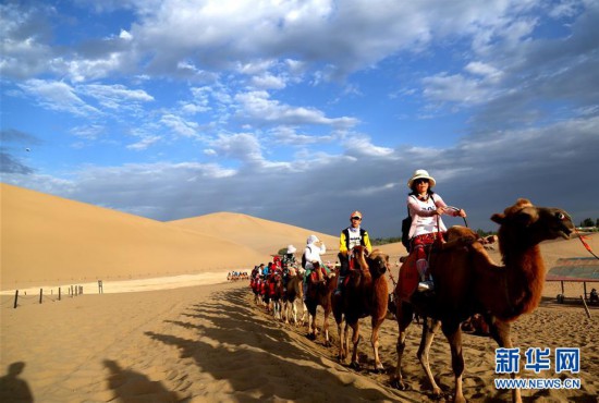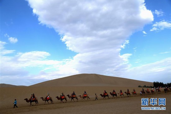 7月29日,游客在甘肅省敦煌市鳴沙山月牙泉景區(qū)參觀游覽。 當(dāng)日,甘肅省敦煌市鳴沙山月牙泉景區(qū)云景如畫,美不勝收,游客徜徉其中,盡情欣賞大漠風(fēng)光。 新華社發(fā)(張曉亮 攝)