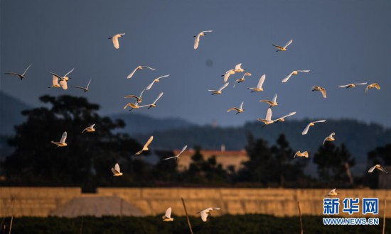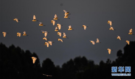 這是余暉下歸巢的鷺群(12月5日攝)。 新華社記者 張愛林 攝