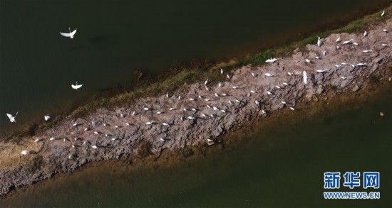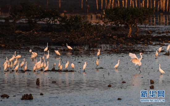這是一群白鷺在茅尾海淺灘處覓食、休息(12月5日攝)。 新華社記者 張愛林 攝