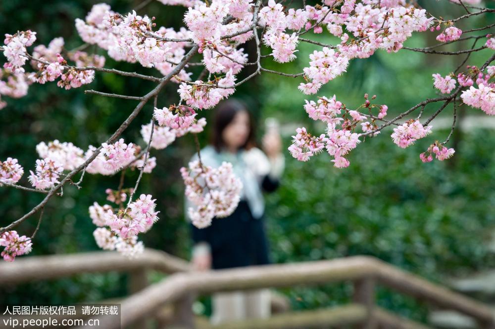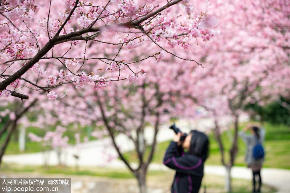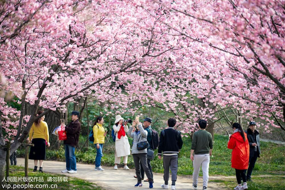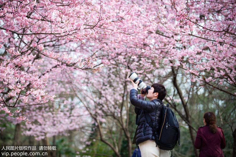 2019年3月13日,隨著氣溫持續(xù)攀升,南京中山植物園櫻花盛開,吸引許多游客前來踏青賞花。蘇陽/人民圖片