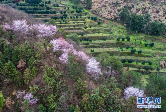 近日,浙江省建德市三都鎮(zhèn)山林中的上萬畝櫻花進入盛花期,宛若一張色彩絢麗的畫卷,吸引各地游客前來觀賞。
